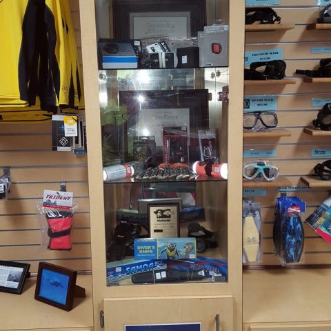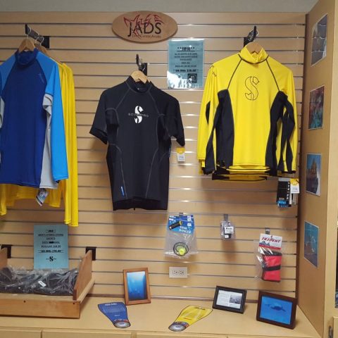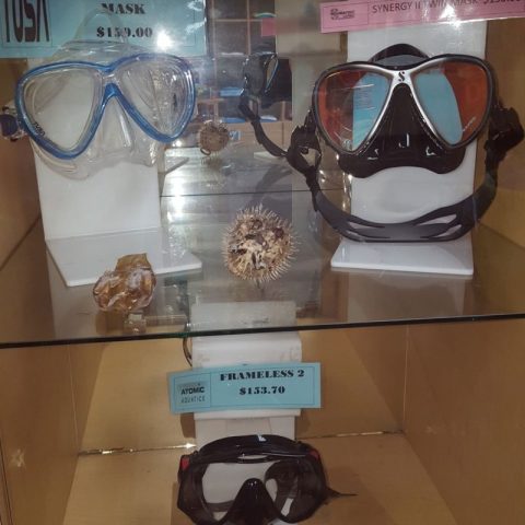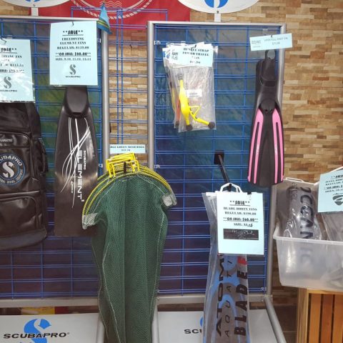 DIVING ACCESSORIES: DEFOGGER ($16.50), MASKS ($69-$205.00), SNORKELS ($52.50-$76.00), SNORKEL HOLDERS ($5.00), MASK STRAPS ($30.00), FINS-FULL FOOT ($71.00-$79.50) AND BOOTY ($190.00-$345.00), FIN STRAPS ($15.90), BOOTIES ($68.50), GLOVES ($40.00-$80.25), MOUTHPIECES ($15.00), KNIVES ($42.40), DIVE COPMUTERS, TRANSMITTERS, DIVE LOGS-BOOK ($20.00), JADS HEADBAND/HAIRBAND ($20.00), DIVERS ALERT SIGNAL DEVICE ($125.00), SCUBA SAFETY TUBE ($108.00-$88.00),