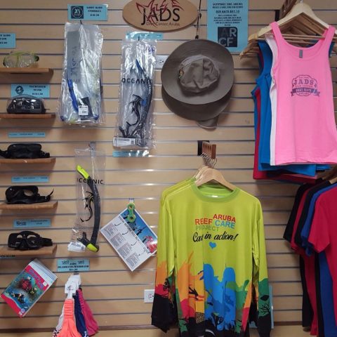 SNORKELING ACCESSORIES: DEFOGGER ($16.50), MASKS ($69.00-$205.00), SNORKELS ($52.50-$89.99), SNORKEL HOLDERS ($5.00), MASK STRAPS ($30.00), FINS-FULL FOOT ($71.00-79.50) AND BOOTY ($190.00-$345.00), BOOTIES ($58.30), FIN STRAPS ($15.90), JADS HEADBAND/HAIRBAND ($21.20), ARUBA MAP AND FISH ID CARDS ($15.50)