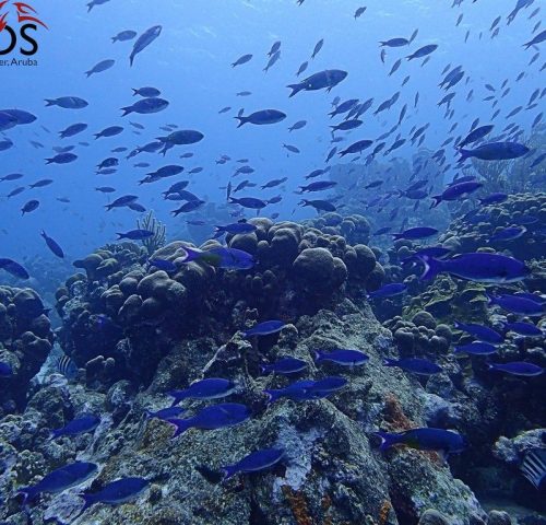 Balashi Reef/Plonco Reef: This reef has hard and soft corals alternating with patched of sand in between called a spur and groove, an abundance of different fish, and depending on which way the current is going you can even see a slope/wall. Maximum depth is 70ft/22m.