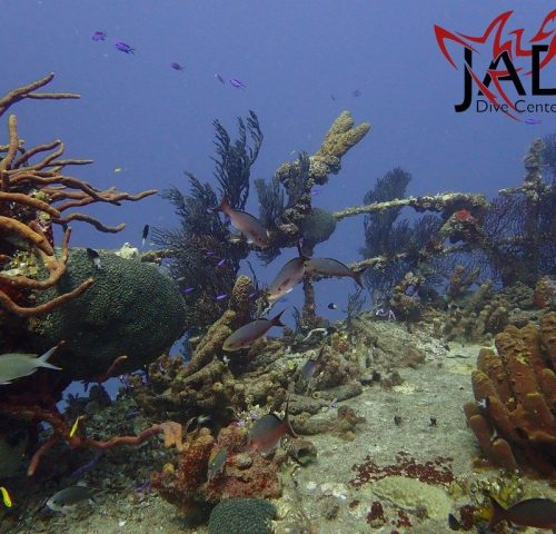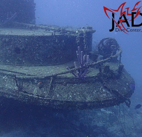 Jane Sea Wreck: Venezuelan cement cargo ship sunk as an artificial reef back in 1988. The wreck is encrusted with corals sitting upright right off a beautiful coral reef. The bow is at 60ft/18m, the top of the stern is at 45ft/15m and the propeller is at 90ft/28m. The wreck is right off the reef. Due to the instability of this wreck, because she is collapsing, penetration is not permitted.
