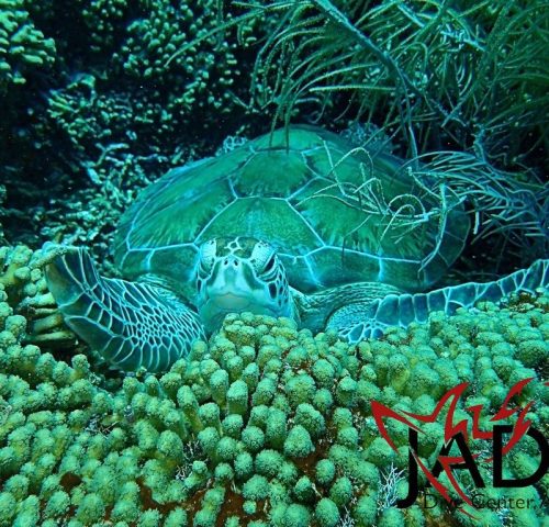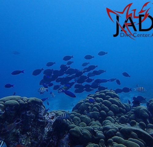 Arashi Reef: This young flat reef is filled with surprises. It serves as a cleaning station for green and hawksbill turtles. If Mother Nature permits, you will be able to see at least one on this dive site! You will see patches of reef, hard and soft corals, with plenty of schools of fish and invertebrates all at a max depth of 50 ft/16m.